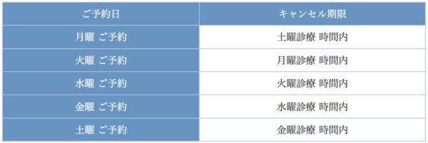 ・1営業日前の診療時間外または当日のご連絡、無断キャンセルの場合は上記キャンセル料が発生します。ご了承ください。